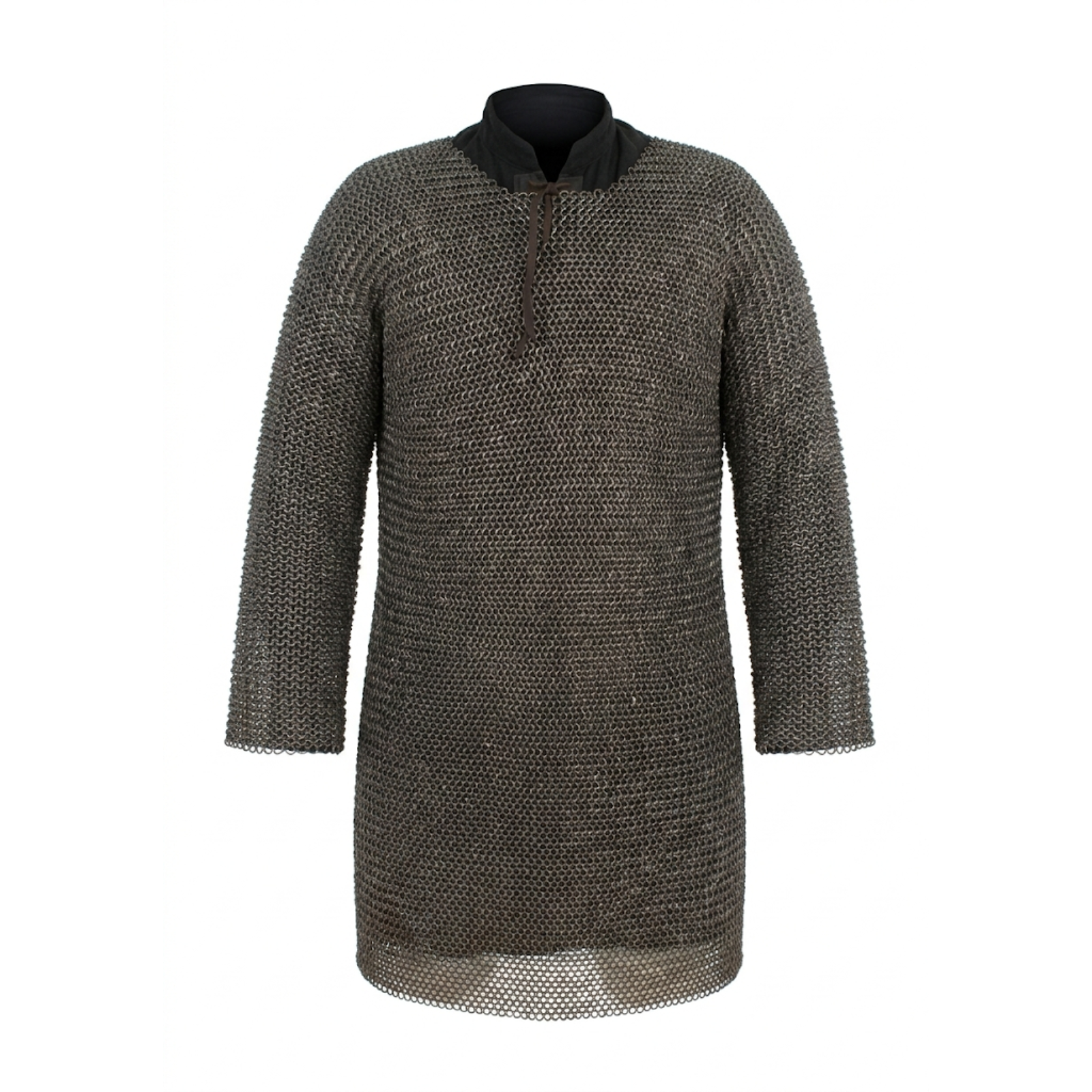 The Riveted Chainmail Hauberk, Flat Ring Domed is constructed from 16 gauge steel rings, providing durability and structural strength while preserving the traditional appearance of historical chainmail armor. The armor is assembled using flat domed riveted rings, a construction method historically used to increase strength and prevent rings from separating under impact.
