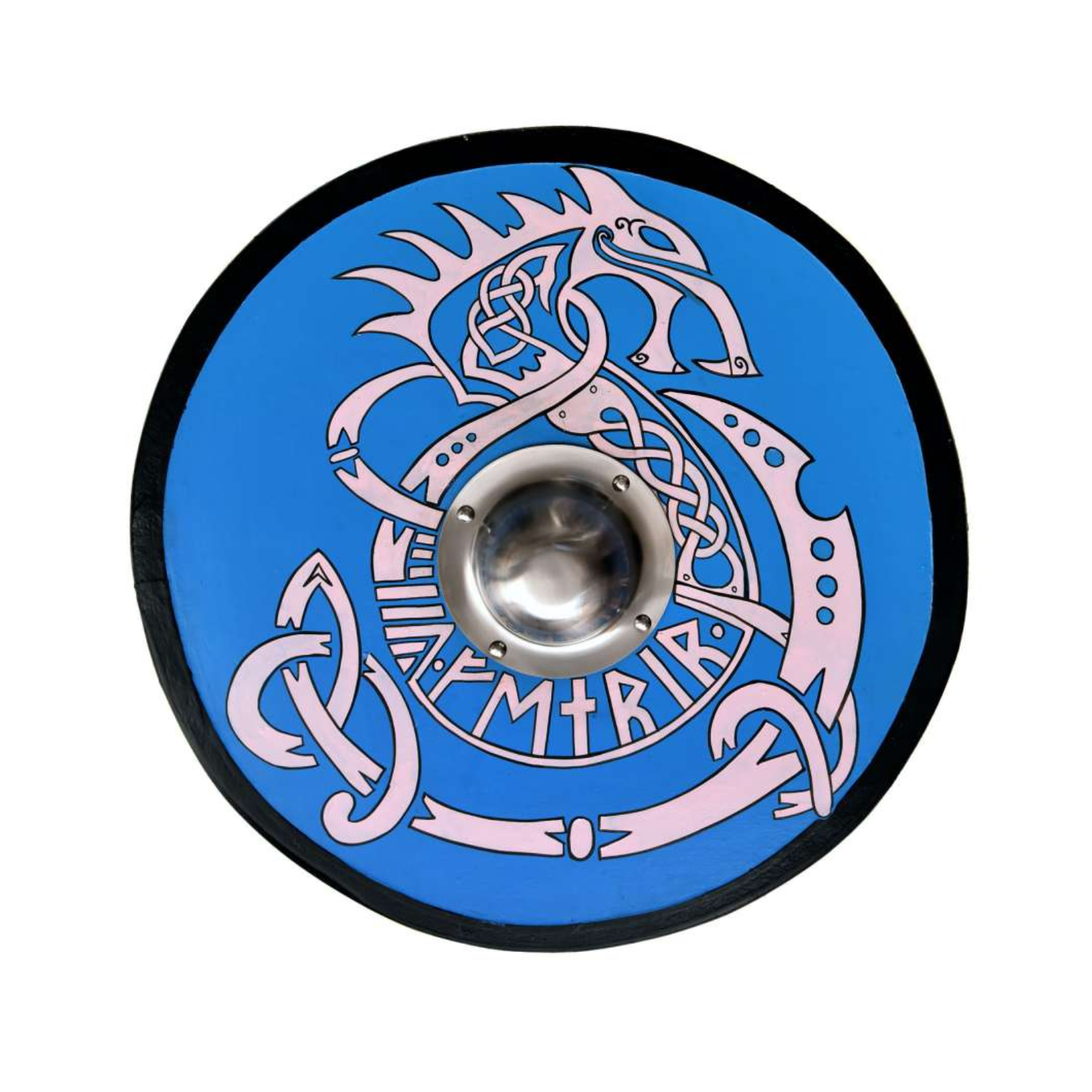 The Viking Shield with Fenrir Motif (stage combat shield) is inspired by traditional round shields widely used by Viking warriors during the early medieval period. Viking shields were an essential part of a warrior’s defensive equipment, providing protection in combat while also serving as symbols of identity and strength. Round shields were commonly carried in battle formations and used for blocking strikes, pushing opponents, and maintaining defensive formations.