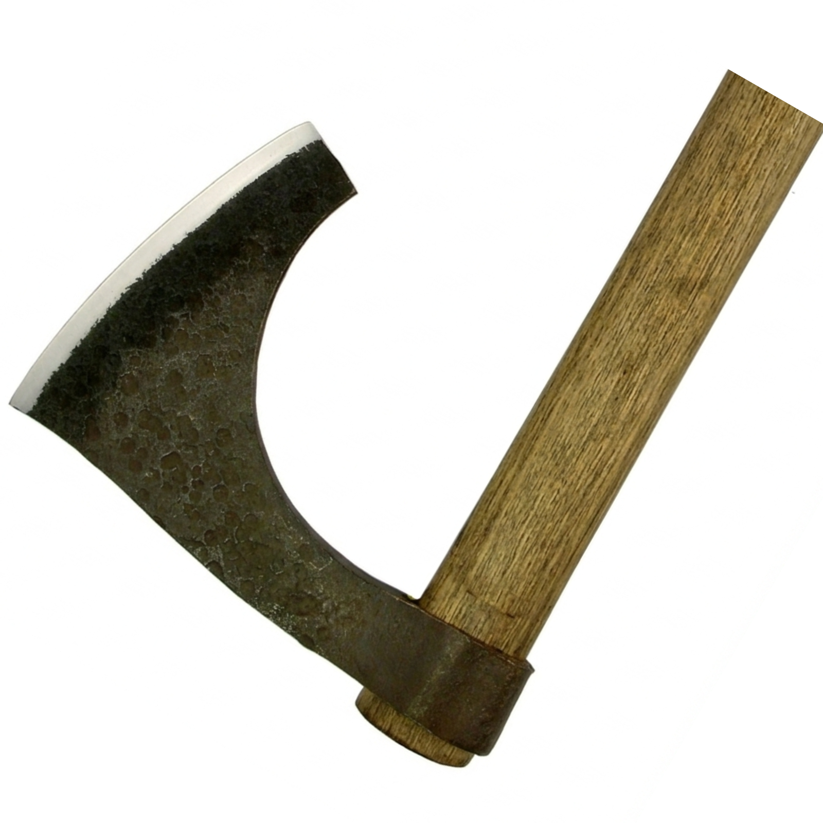A historically inspired Viking bearded axe forged from 1080 high carbon steel, featuring the classic extended beard blade design. Suitable for collectors, reenactment, and historical display.